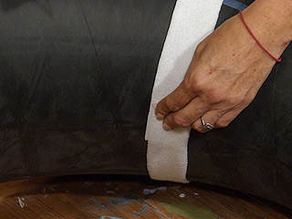 Paso 5: Repetir el procedimiento con la segunda tira, superponiéndola a la primera en la circunferencia interna de la llanta y alineándola en la circunferencia externa, para que cubra toda la superficie.